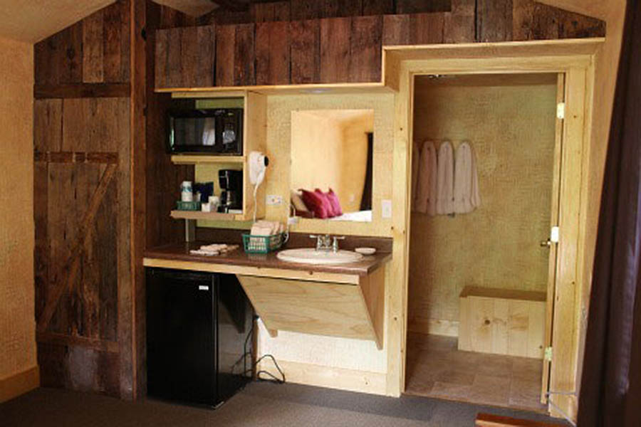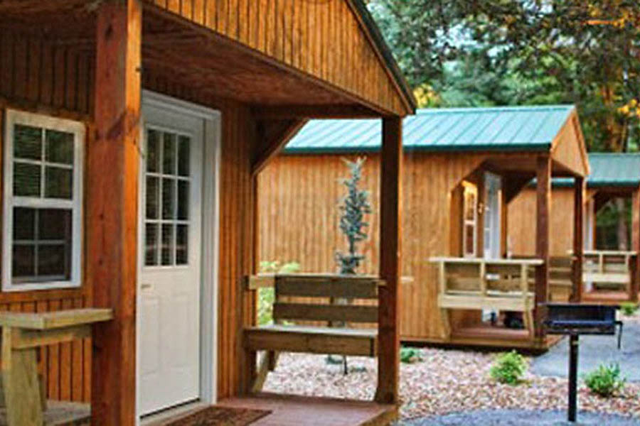 Each cabin is outfitted with a King size bed sleeping 2 and full bath and sitting porch. Cabins are within closest walking distance of the river, Mill Store, Hearthside and the Beach Bar.