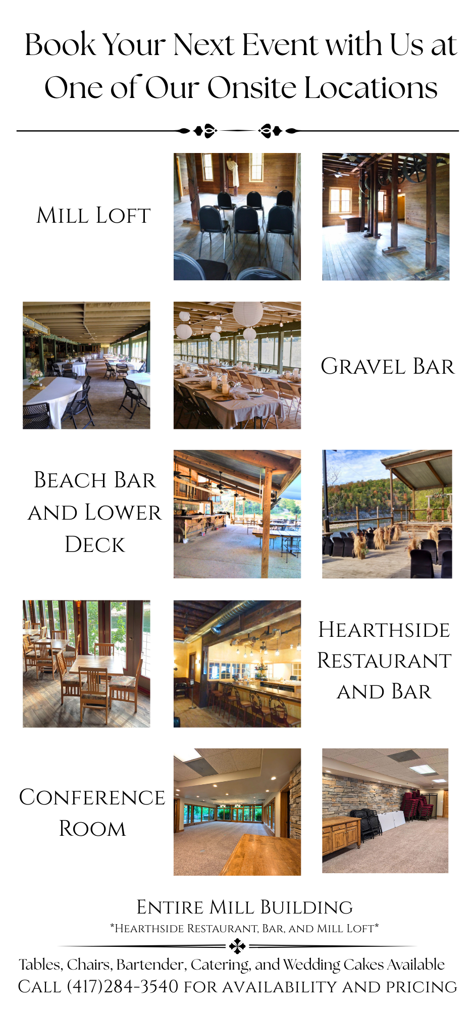 Dawt Mill can be your event destination. The perfect mix of rustic outdoors with a touch of class. We offer mostly outdoor 3 season spaces with indoor spacing for smaller groups. Great for anything from Birthday parties, Baby Showers to Weddings and Receptions!