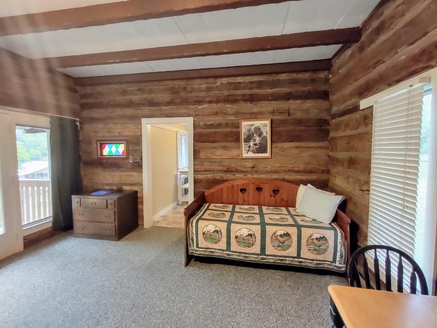The Log Cabin sits up the hill from the river and is located between the General Store, the Cotton Gin Inn and next to the Hodgson House. Updated features have been added to the structure creating a modern version of country living, including a kitchen, bedroom and bathroom.
